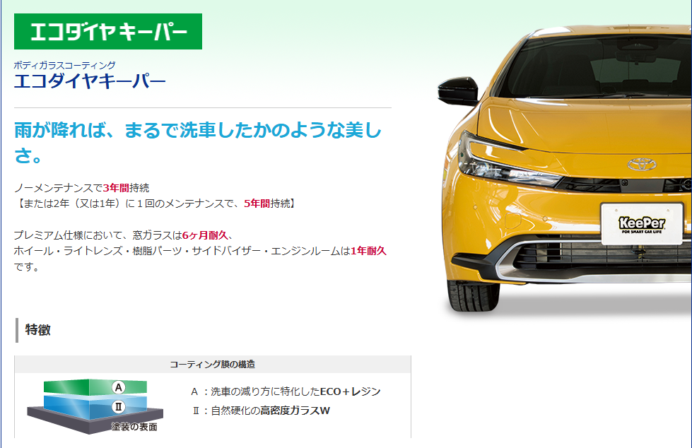 メンテナンスは1年に1度定期的に行うスタイルか、3年間ノーメンテナンスのスタイルと2種類のご用意となりますので、普段の駐車場所や、お手入れ状況を伺ったご提案をさせて頂きます。