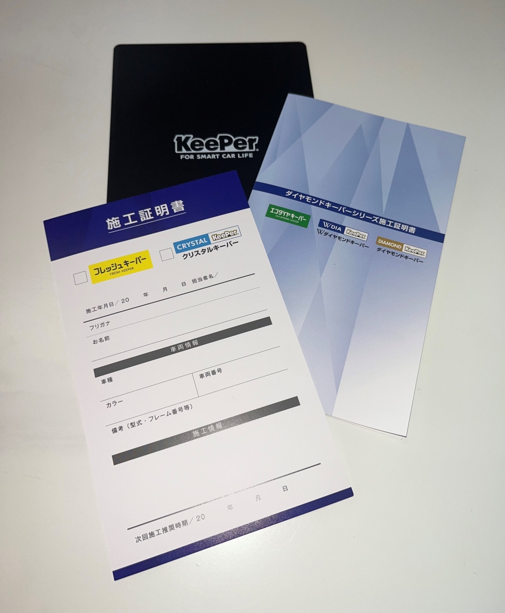 コーティング施工後は『施工証明書』をお渡ししております。