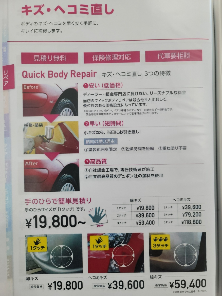 ボディリペア お車の気になるキズ・ヘコミの修理できます!