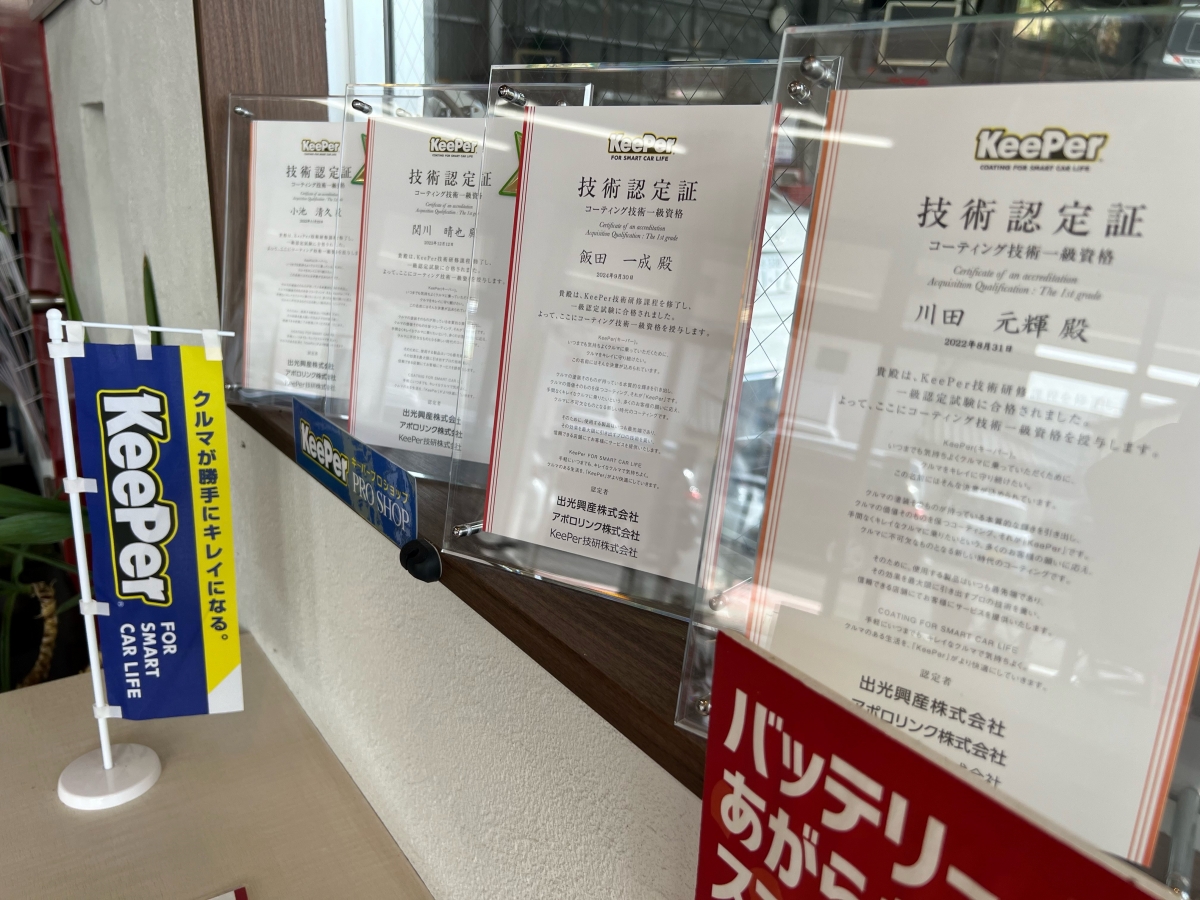 当店はKeePer一級認定試験に合格した「コーティング1級技術者」が在中しています。