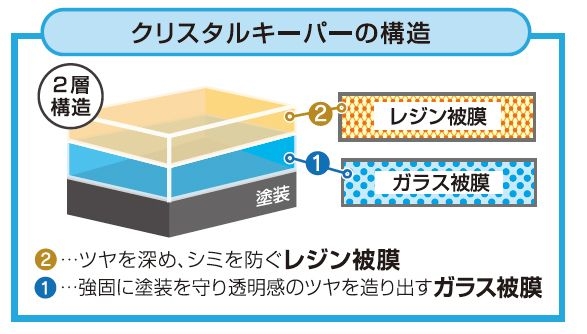 ガラス被膜を2層重ねることで、厚く密度の濃い被膜を実現します。