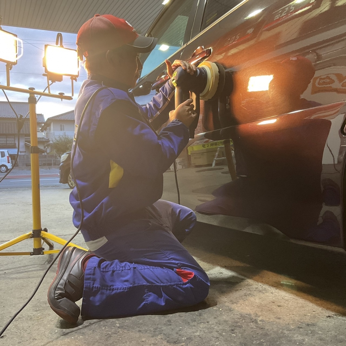 標準作業の軽研磨ではボディ全体の凹凸を概ね平らにしコーティングによって得られるツヤの引き立て役を担います。