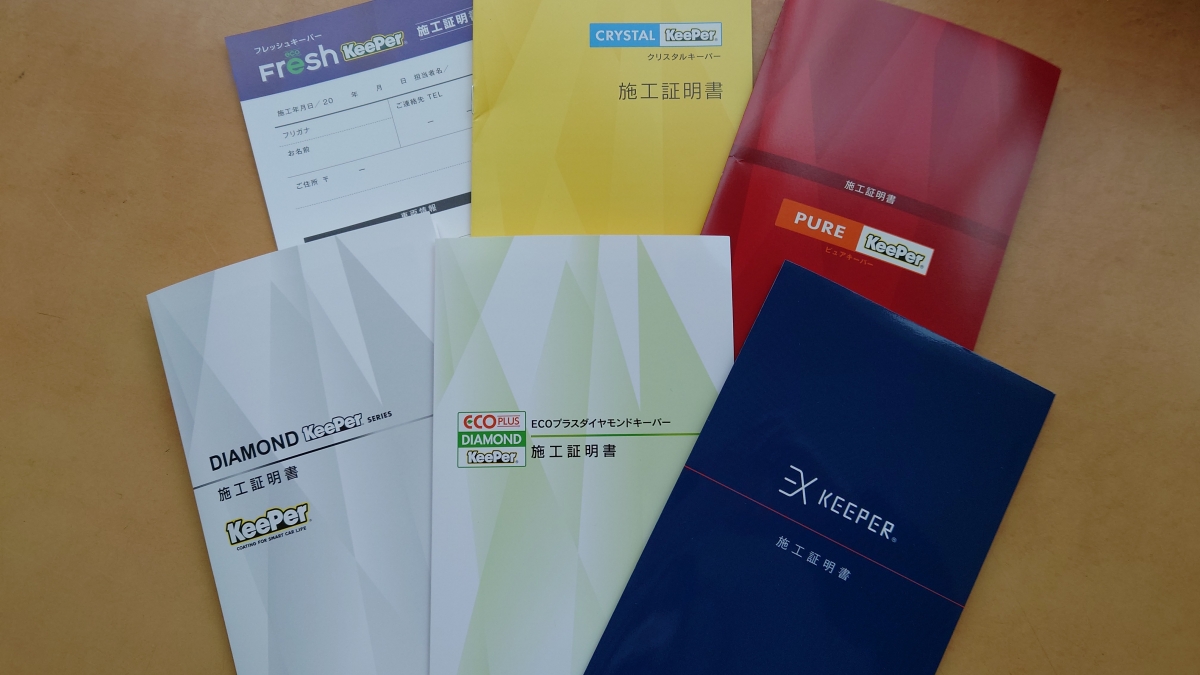 当店の各種コーティングには、施工証明書を発行しております。
