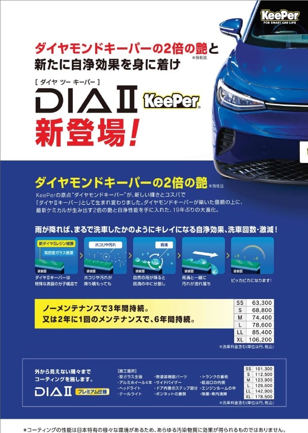 「1回施工したら、おしまい」ではない、コーティングプロショップならではの「メンテナンスを含めた長期的なプラン」を実現できるのがキーパープロショップの各メニュー。 ぜひご相談ください♪