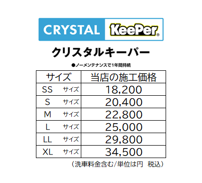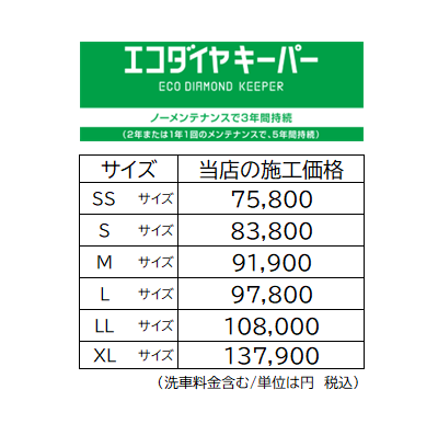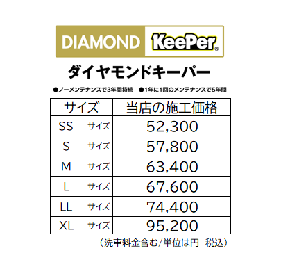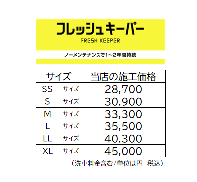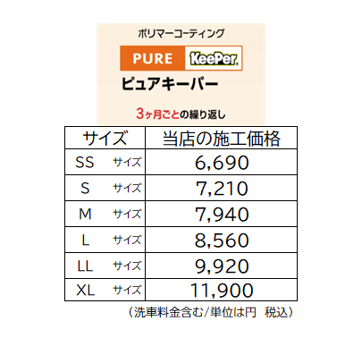 ※EXキーパーは新車用コーティングの為、納車1ヶ月以降もしくは1000km以上走行の車は、