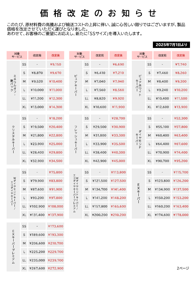 このたび、原材料費の高騰および輸送コストの上昇に伴い、誠に心苦しい限りではではございますが、
