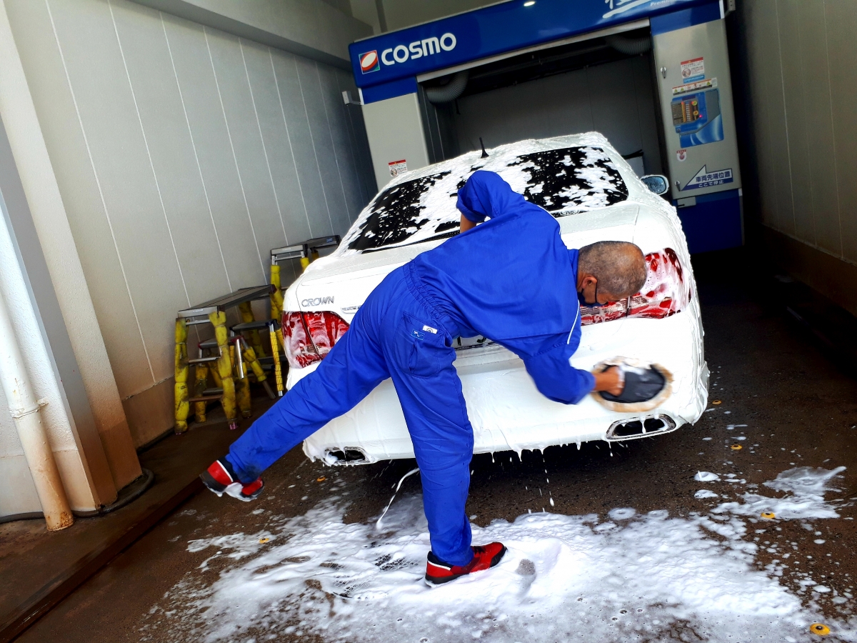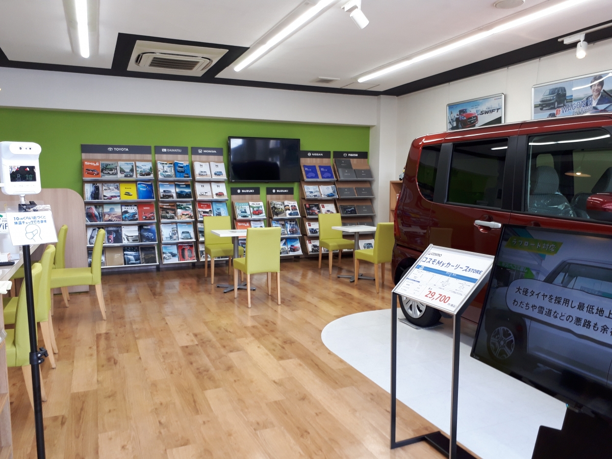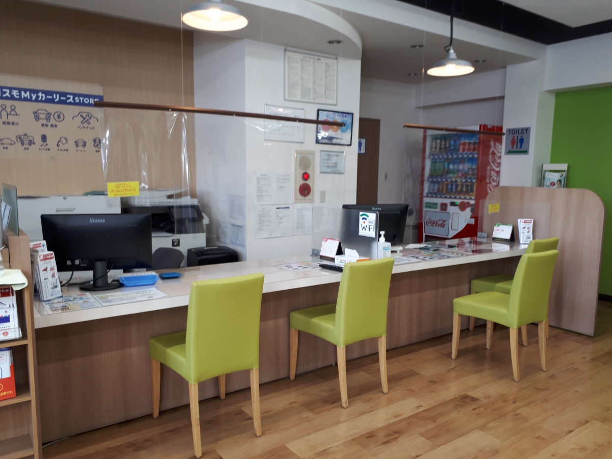 カウンターでお客様の車について、