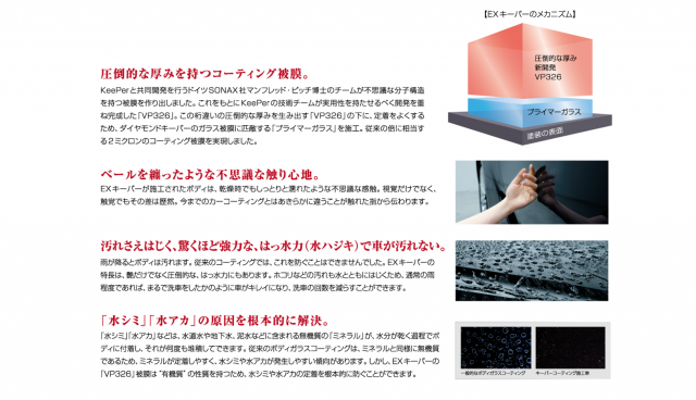 Keeperは、コーティング施工後の手入れに関して、通常の水洗い洗車・シャンプー洗車でOK。また洗車機での洗車も、全く問題ありません。と謳っています。