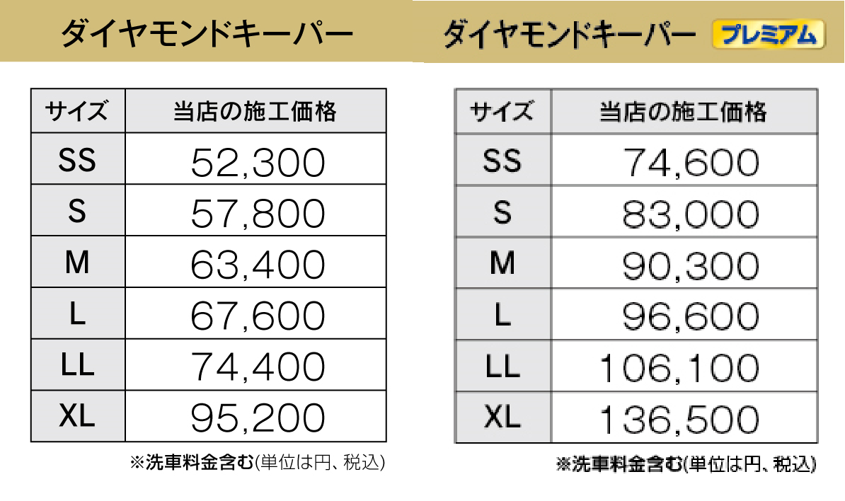 ダイヤモンドキーパーは、後述のクリスタルキーパーよりも密度が高く、厚い被膜で塗装を守るのが特徴です。新車へのコーティングだけでなく、研磨作業も含まれるので、細かいキズがある経年車もオススメです!