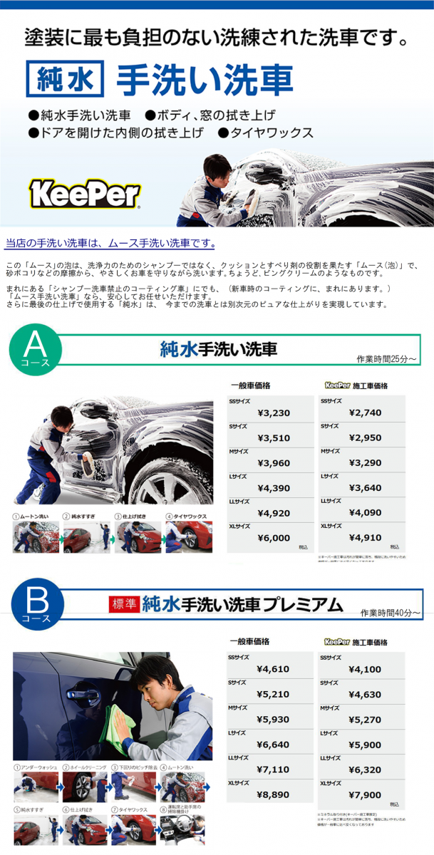 ☆コーティングメニュー☆車種別サイズ一覧表←クリック