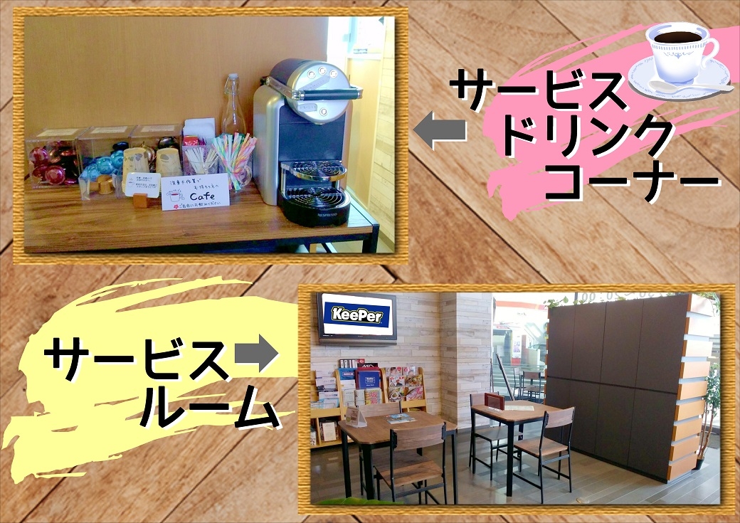 ゆっくりお待ち頂ける、カフェコーナーとカフェ風待合室です 笑