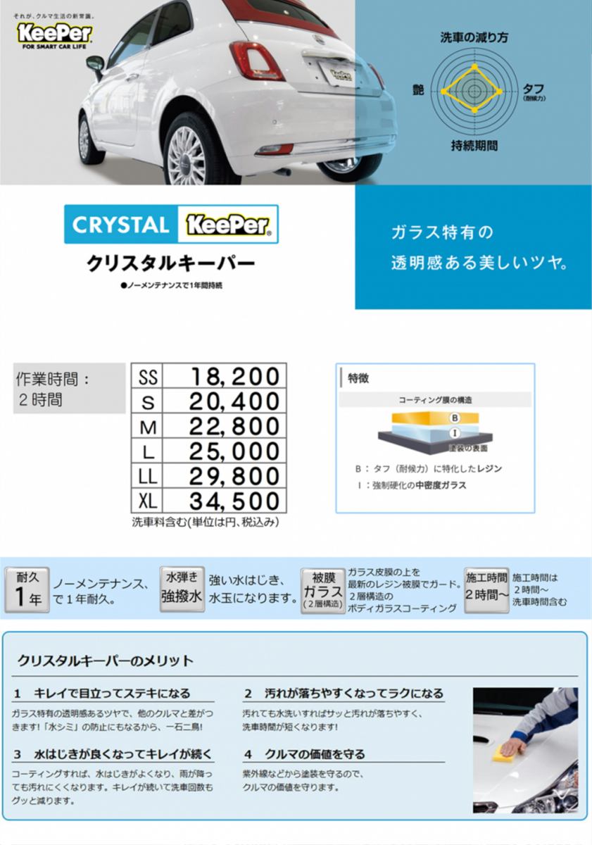 ガラス被膜の厚みが1ミクロンあります(通常のガラスコーテイングの50倍の厚さ)(被膜が厚くて柔らかいのが特徴です)