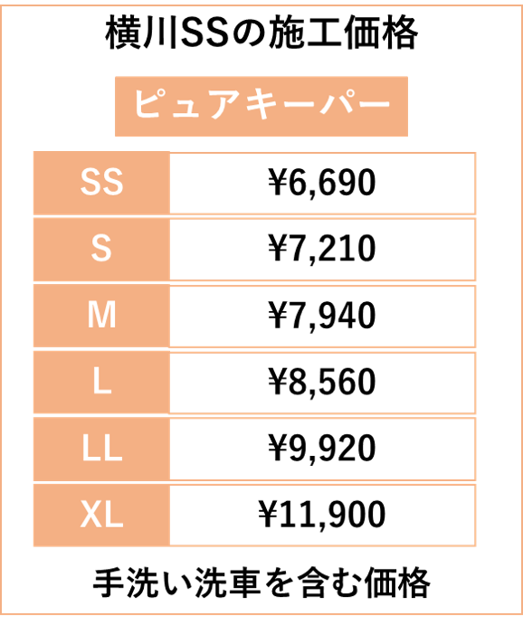 ※XLサイズ料金については店舗にご確認の程お願いします。