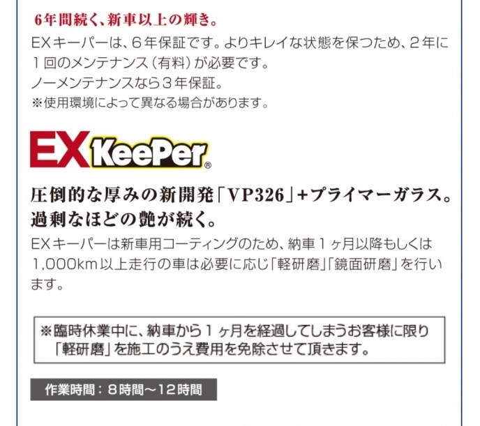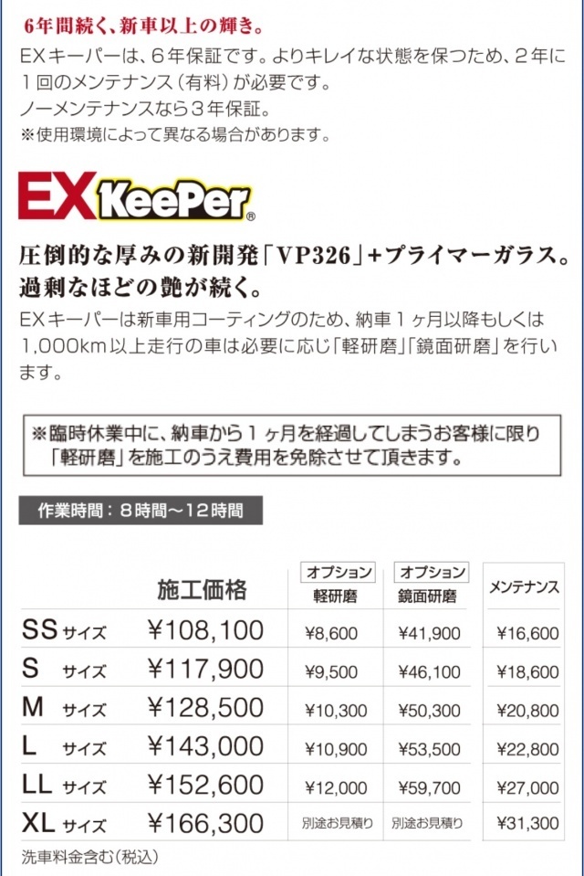 きちんとしたキーパーコーティングの品質を高めると共にお客様への 信頼感・安心感は抜群‼