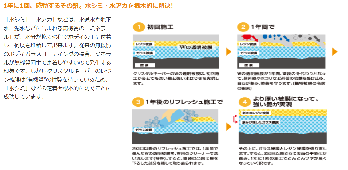 クリスタルキーパー!!ノーメンテナンスで一年耐久!!