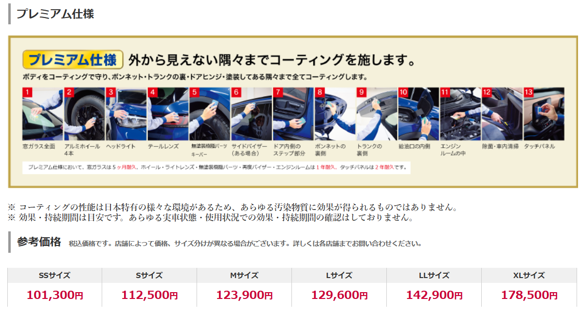きちんとコーティングができているかを確認させていただく為に施工から1ヶ月以内の期間に無料で手洗い洗車をさせてただいております。