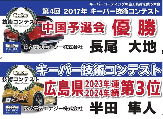 キーパープロショップ祇園新道SSのホームページにようこそ♪ 2023年、2024年2年連続キーパー技術コンテスト広島県第3位 社内キーパー技術コンテスト全国大会第3位 在籍のお店^_^♫
