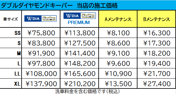 ダイヤモンドキーパーのガラス層を2層にしてコーティング致します!! 約1ミクロン(普通のガラスコーティング膜の50倍程度)のガラス被膜を1層塗った後に乾燥させ、再度ガラス被膜を塗り重ねるダブル構造。 ダイヤモンドキーパーは、【ガラス・レジン】の2層構造。 対して、ダブルダイヤキーパーは【ガラス・ガラス・レジン】の3層構造です。 厚いガラスの層がたっぷり2倍あることで、艶や、防汚能力も強化された被膜を形成します♪