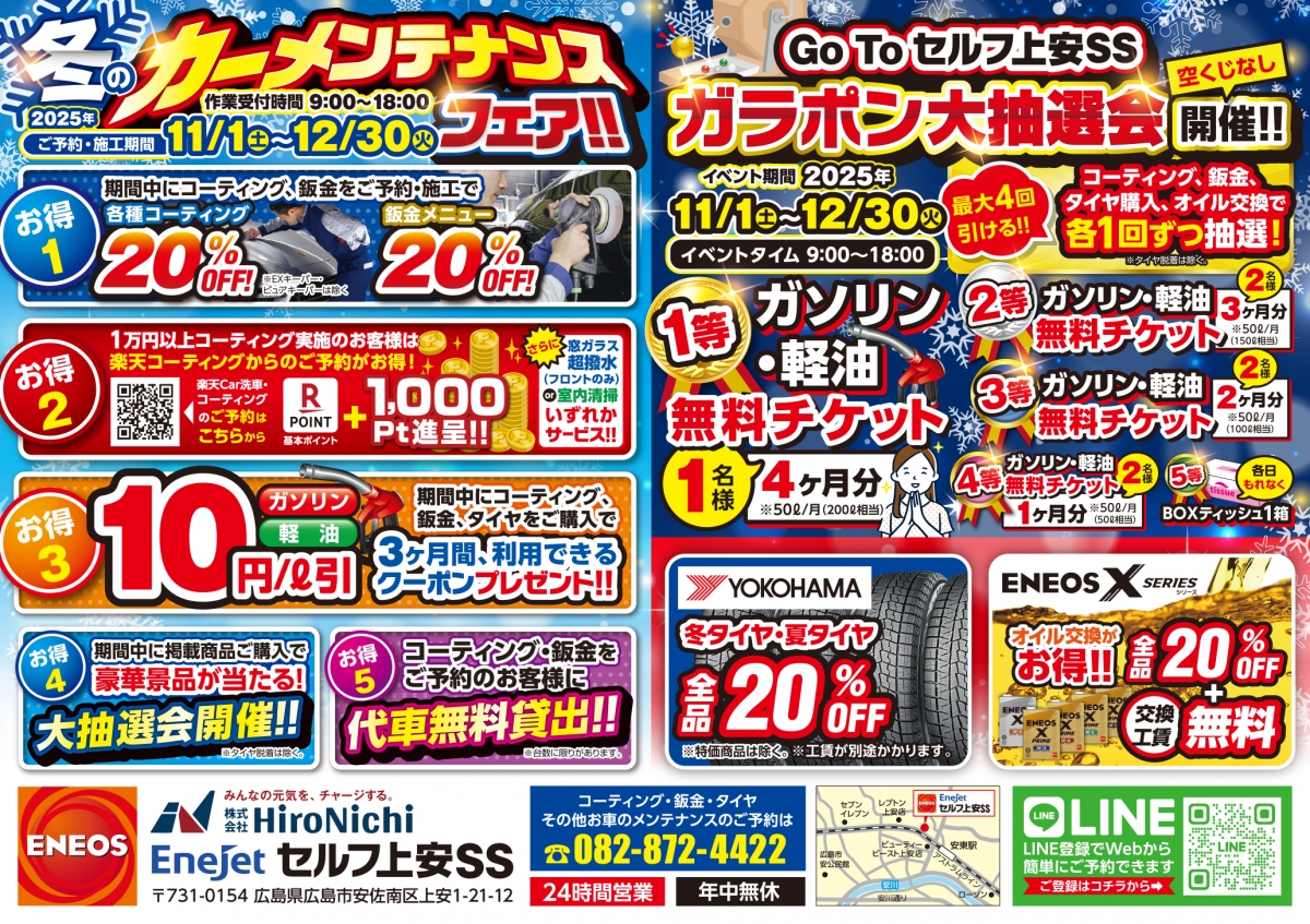広島市安佐南区にあるセルフ上安SSは2024年9月にリニューアルオープンしました!