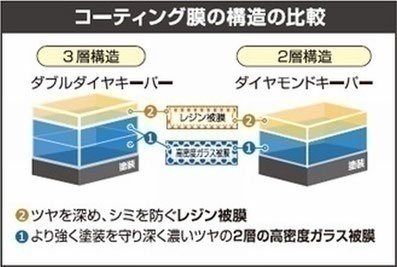 車の外装は高密度ガラス被膜を2層に重ね