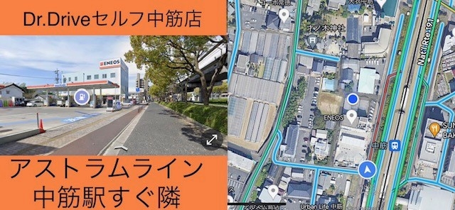 広島インター手前、アストラムライン中筋駅の真横にありますDr.Driveセルフ中筋店です!