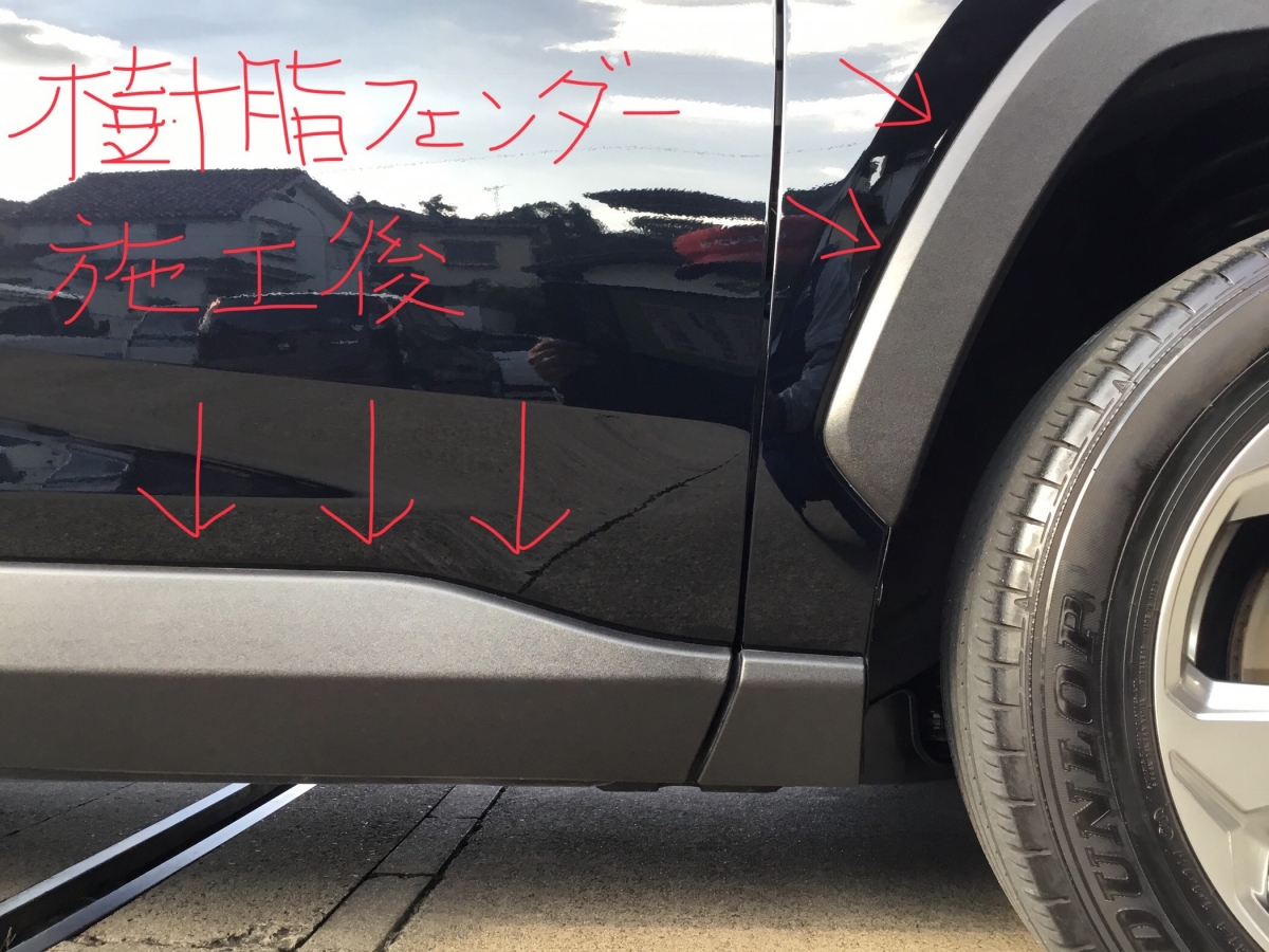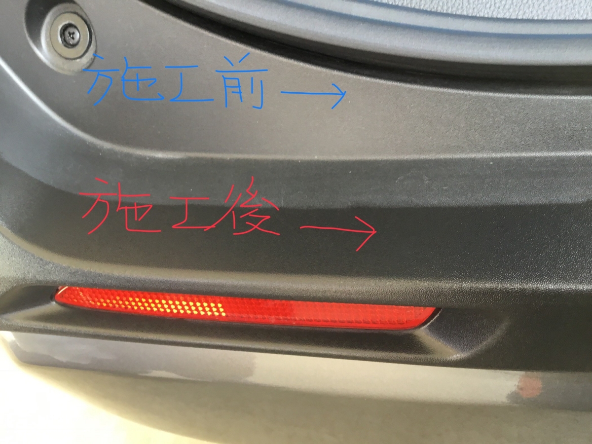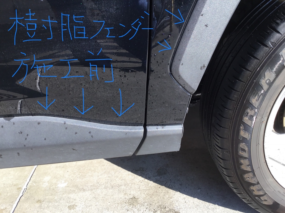 樹脂フェンダーキーパーは、これまでの無塗装樹脂コーティングのように一時的なものではなく、硬化する被膜を形成して1年以上の耐久性を持つというもの。配合される極微の二酸化チタンにより紫外線をシャットアウトして再白濁を防ぎ、昨今のSUV系モデルに多い無塗装の樹脂でできたバンパーやフェンダーの、しっとりとした樹脂そのものの発色とツヤを保ちます。