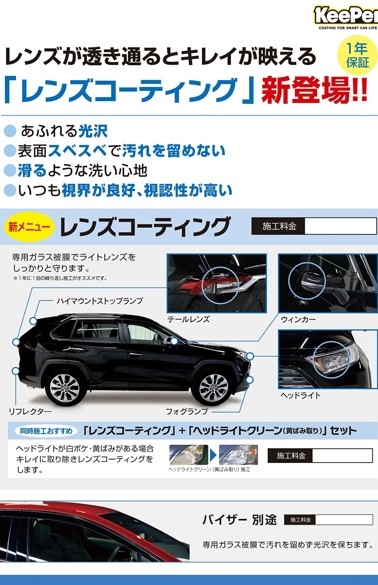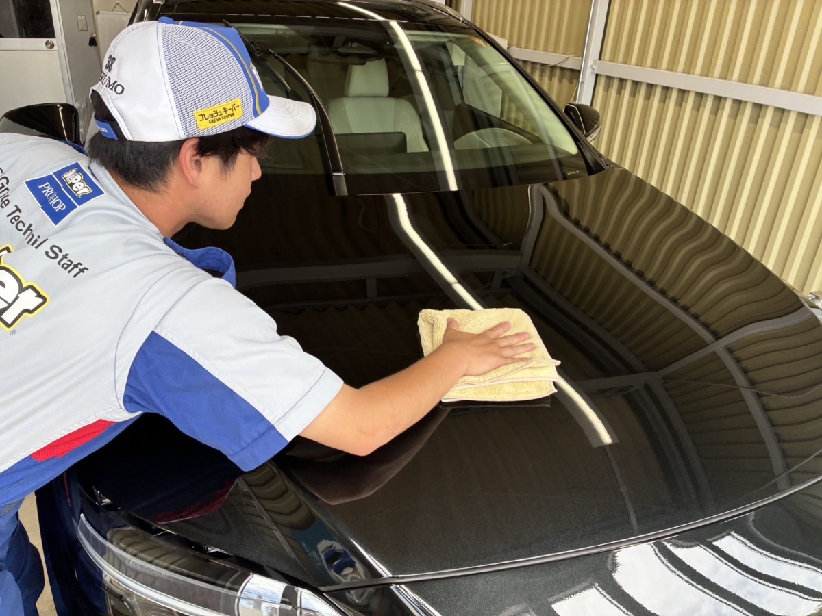「新車の輝きを長持ちさせたい」「中古車をピカピカにしたい」「水垢や雨ジミが気になる」そんな方には、キーパーコーティングが最適。高い耐久性と艶、さらにお手入れが楽になり洗車の回数も減らせます。