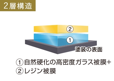 ・高密度ガラス被膜と有機レジン被膜の2層構造で、塗装をしっかり保護