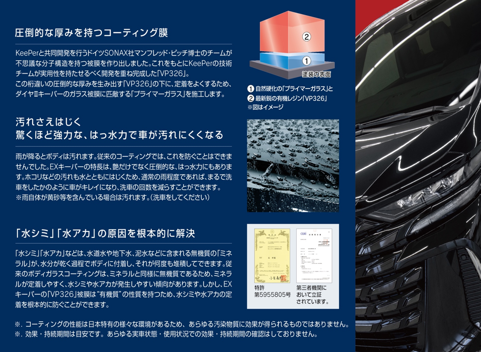 最上級のツヤと輝き、そして撥水力をお楽しみいただけるコーティングです。