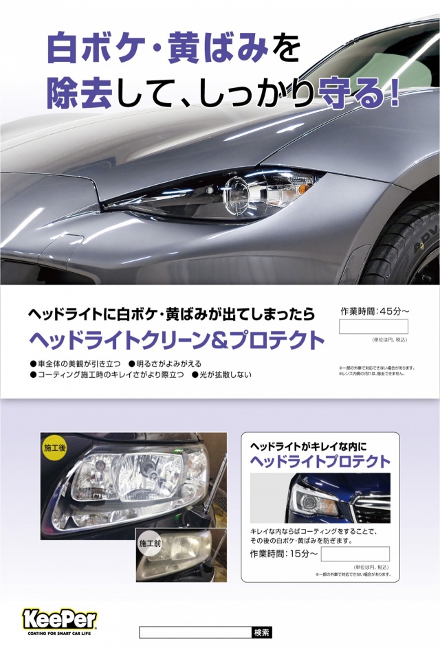 ・白ボケ・黄ばみの予防に、ヘッドライトコーティングもございます!!