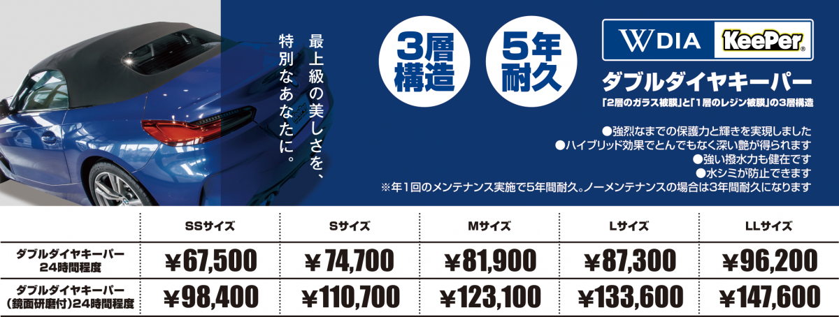 用途や費用に応じて選べるコーティング、やってます!