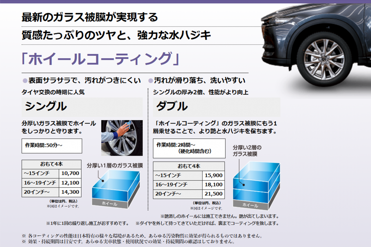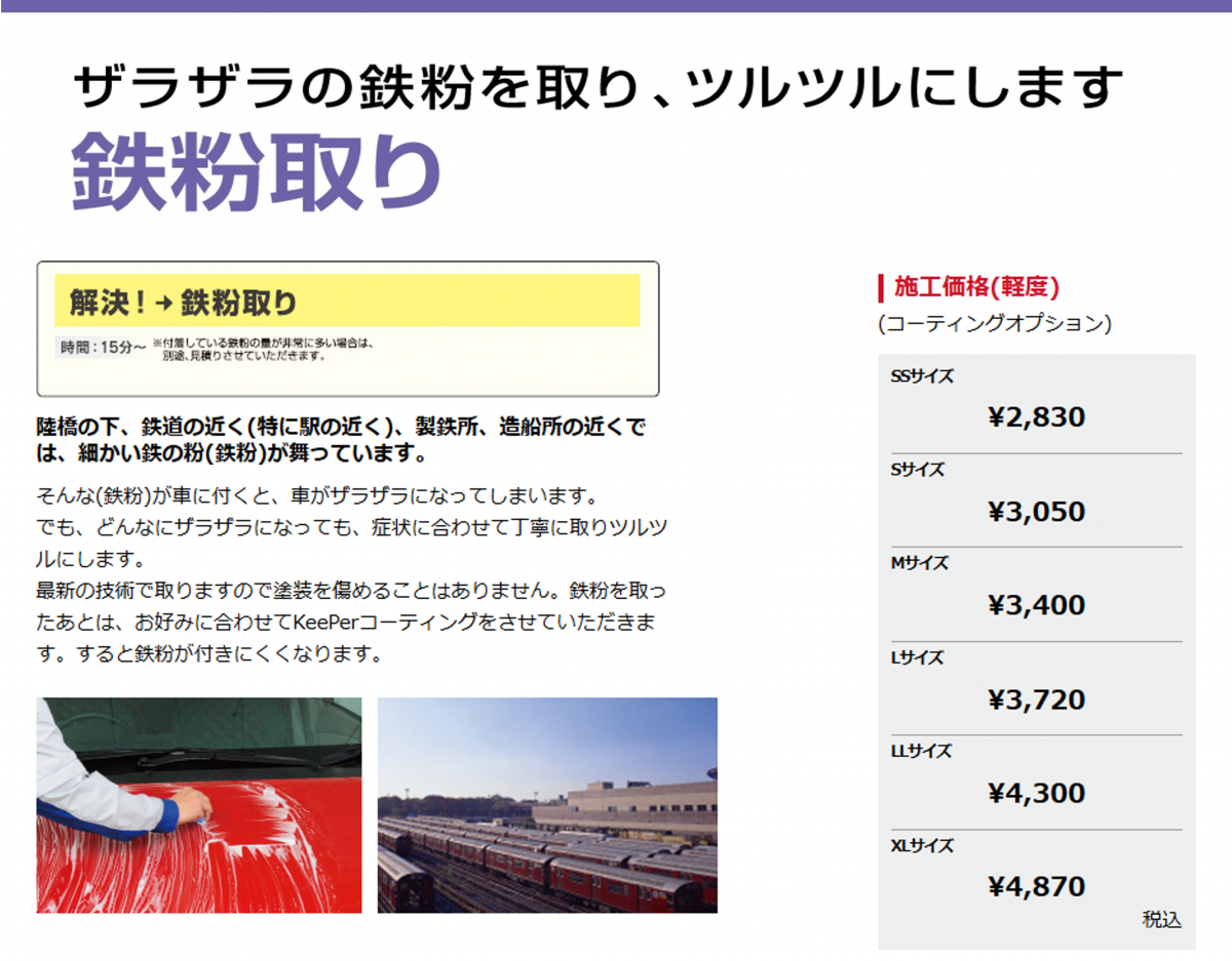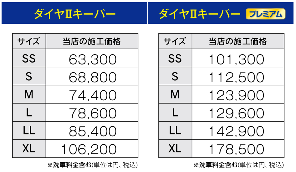 お車のおおきさに応じて施工料金が変わります。