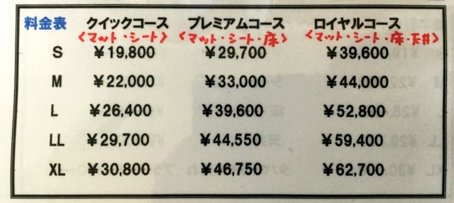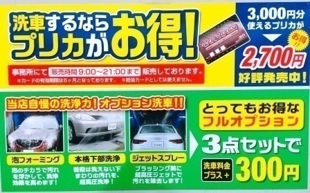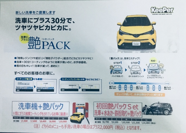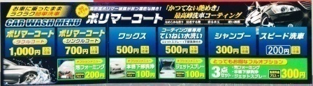 (洗車機+艶パック)SSサイズ⇒ ¥7,400 Sサイズ⇒ ¥7,800 Mサイズ⇒ ¥8,400