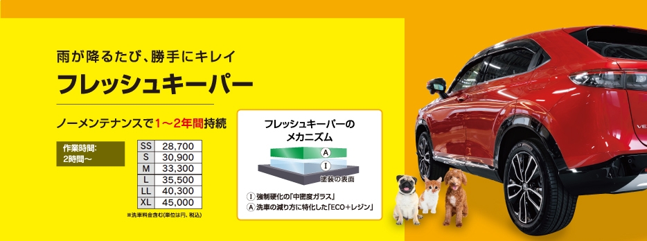 ボディのEXキーパーに加えて 超撥水ガラスコート(全面) 樹脂フェンダーキーパー Wホイールコーティング2 レンズコーティング サイドバイザーコーティング ドアステップ トランク、ボンネット、給油口の裏側 エンジンルーム スマホキーパー 隅々までコーティングするプレミアムなコースです。