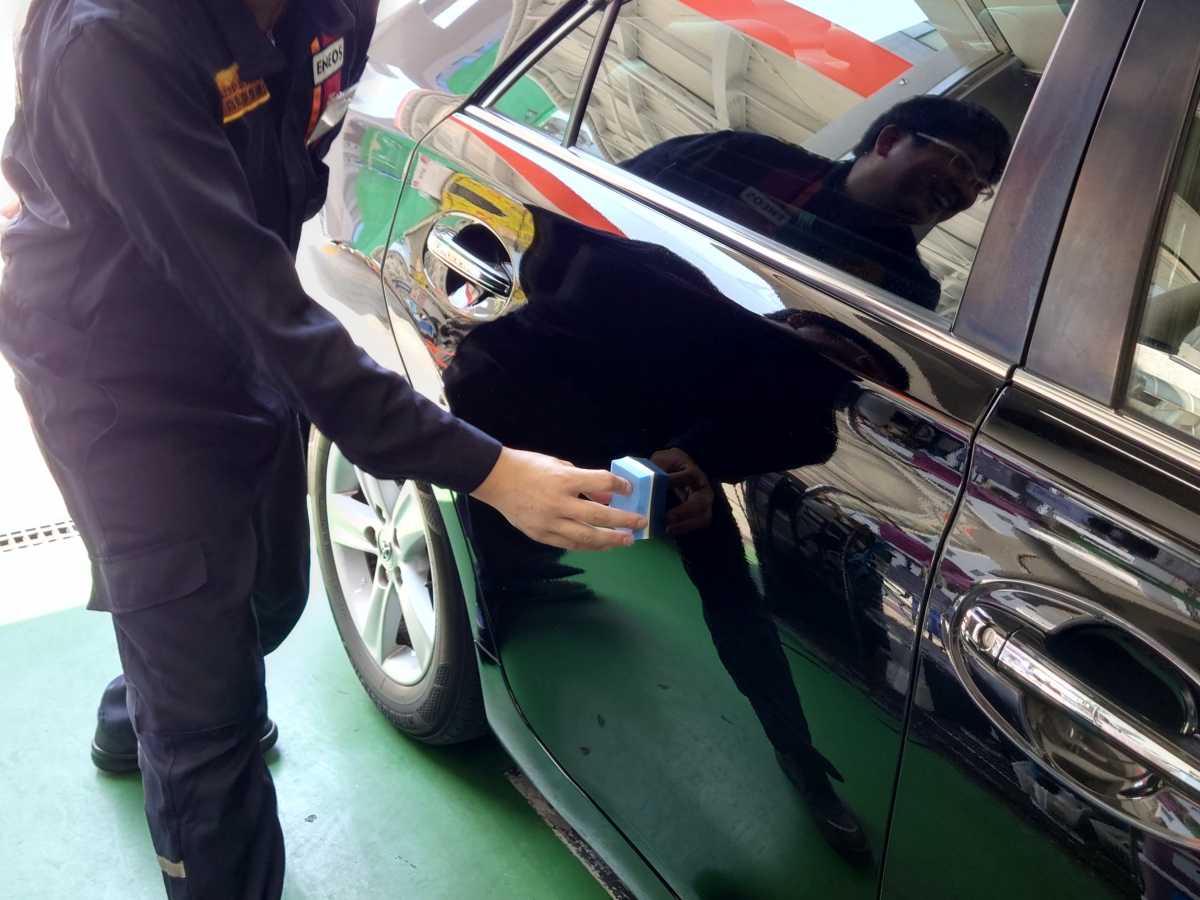 コーティング膜上に付着している汚れをキレイに取る事と、ハイブリットのレジン部分を入れ替え補修し、コーティング膜全体を補強します。