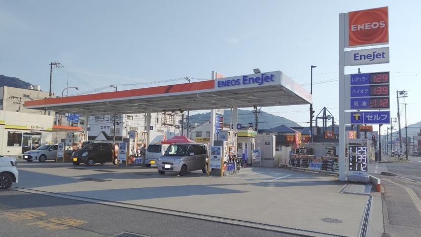 三原市国道2号線沿い角にあるENEOS Enejet セルフ西三原SSです。