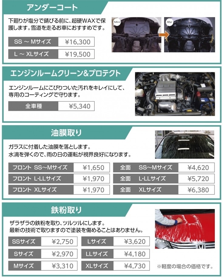 洗車・コーティングはもちろん、愛車の点検・整備も安心してお任せ下さい!