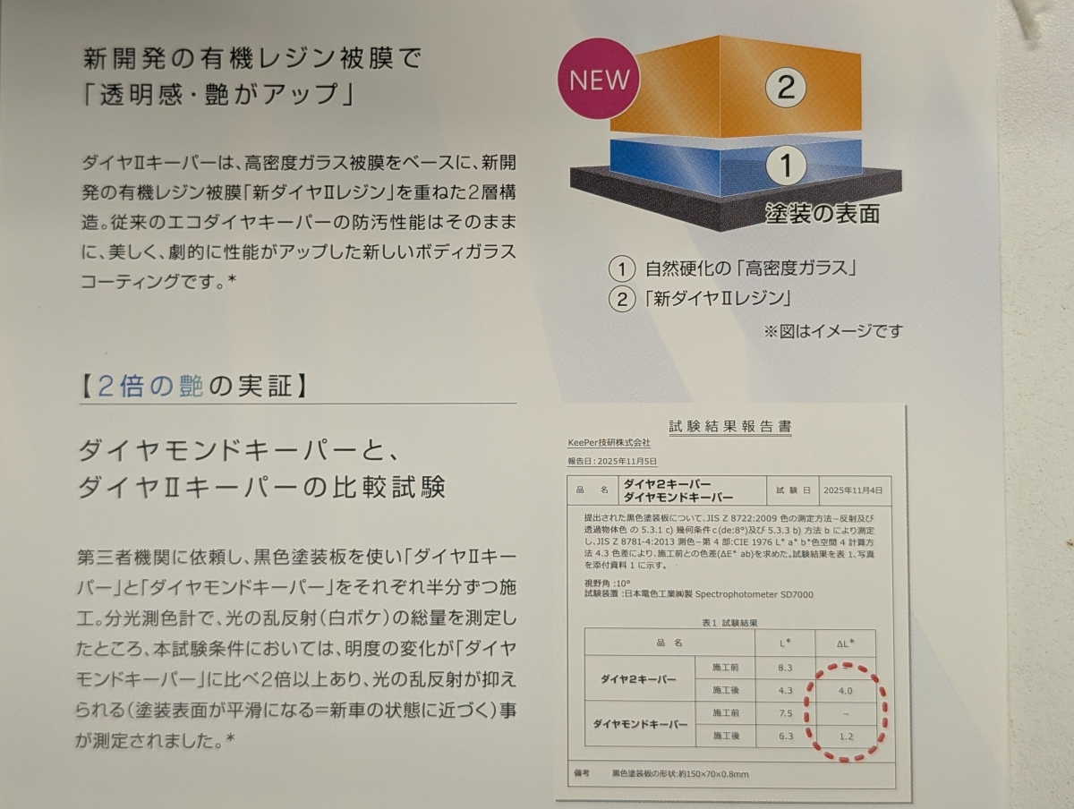 改良された二つのケミカルで塗装面を分厚く守り、水シミや水アカ汚れも出来にくく成りますよ(@^▽゜@)ゞ