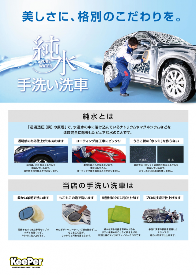当店の手洗い洗車、カーコーティングは全て純水仕上げです。