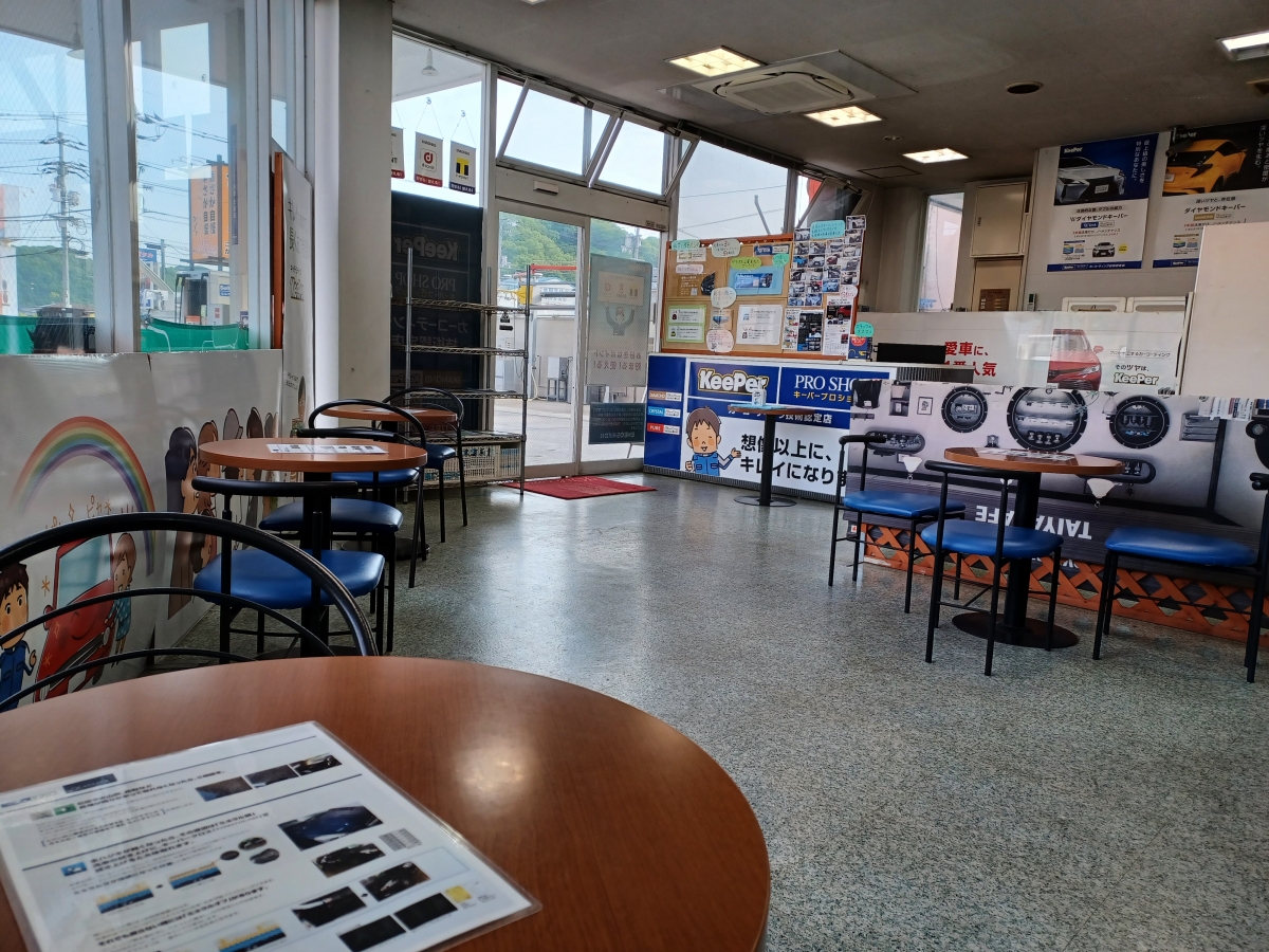 タバコが苦手な方にもゆっくりとお待ちいただけるよう、洗車・コーティング等でお待ち頂くサービスルーム内は禁煙になっています。