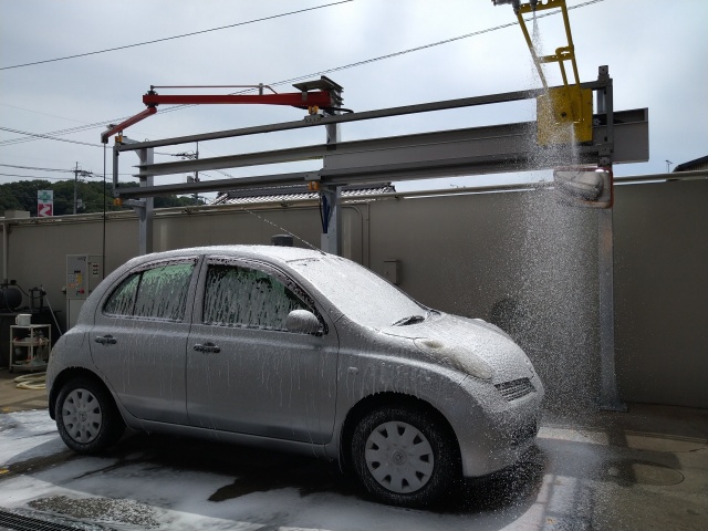 こだわりの手洗い洗車をさせて頂くための水・泡などがでます。