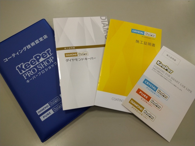 当店の各種コーティングには「施工証明書」を発行しております。