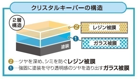 層構造1層目がガラス被膜2層目がレジン被膜、2層目のレジン被膜が身代わりとなり外部の汚れ(攻撃)を受け止める!!