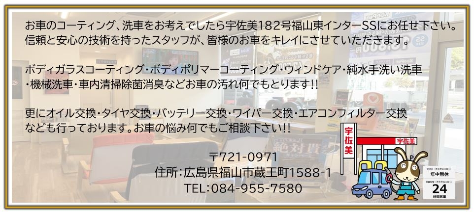 ようこそ、㈱西日本宇佐美 山陽支店 182号福山東インターへ!!