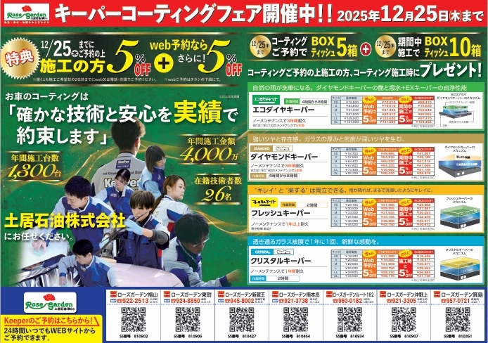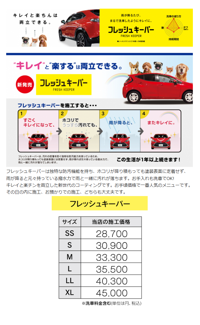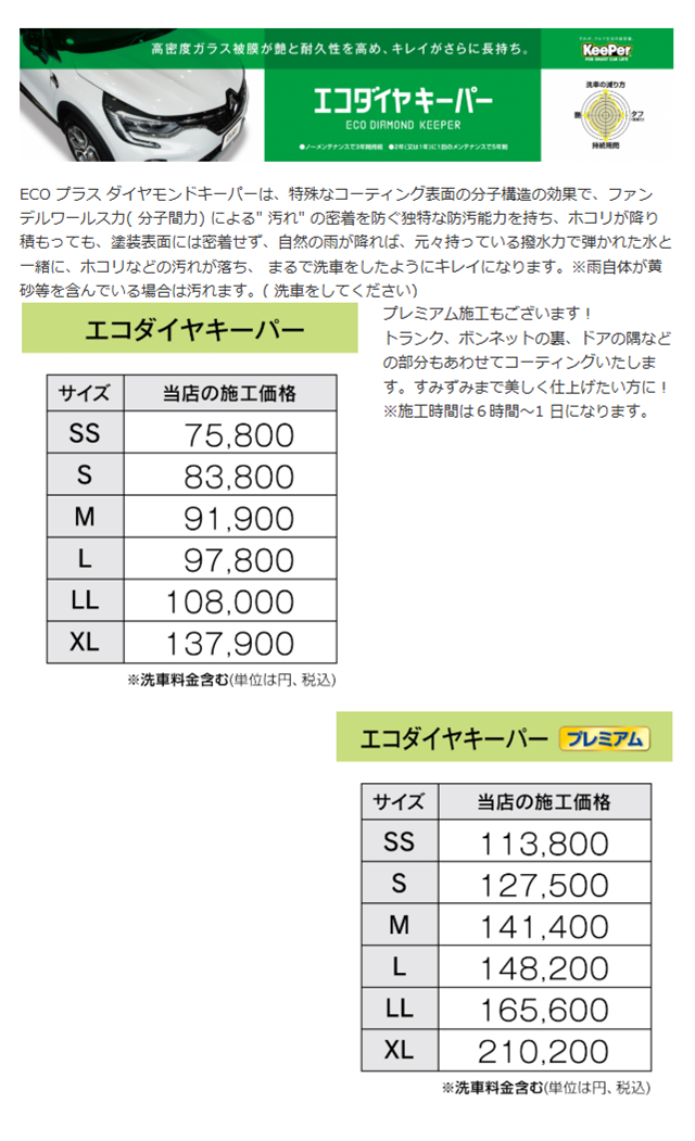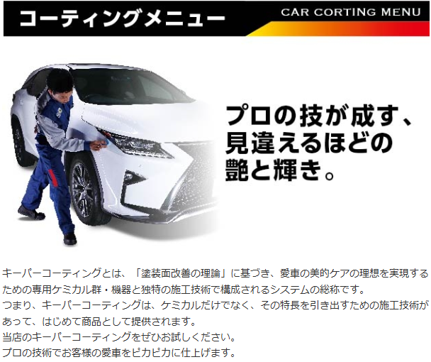 コーティングブース完備、キーパー技術資格者多数で自信を持ってお客様の愛車をキレイにします!