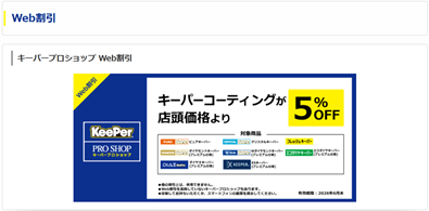 | 純水手洗い洗車 | SS : 3,230(2,740)円 S : 3,510(2,950)円 M : 3,960(3,290)円 L : 4,390,(3,640)円 LL : 4,920(4,090)円 XL : 6,000(4,910)円 | ()内はキーパー施工車価格 |