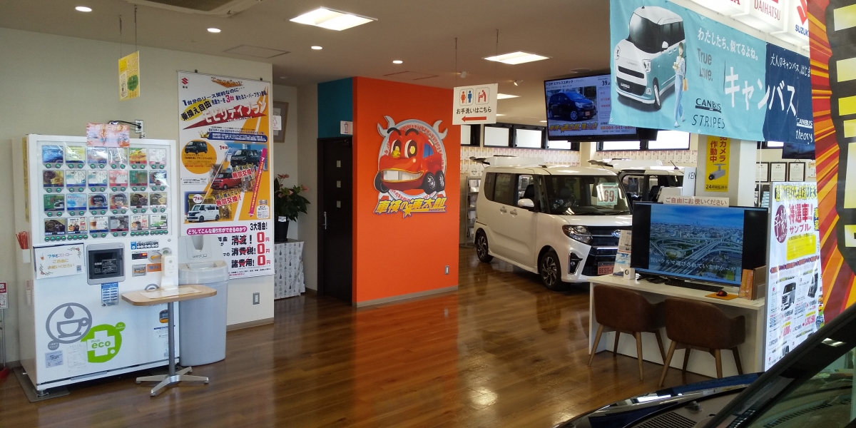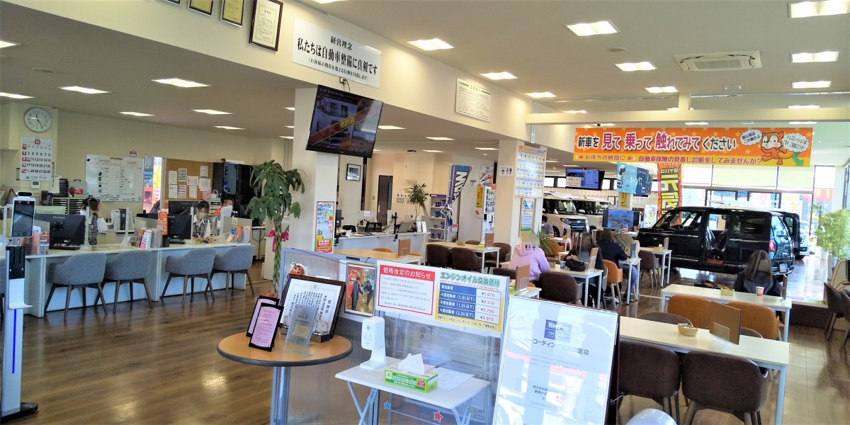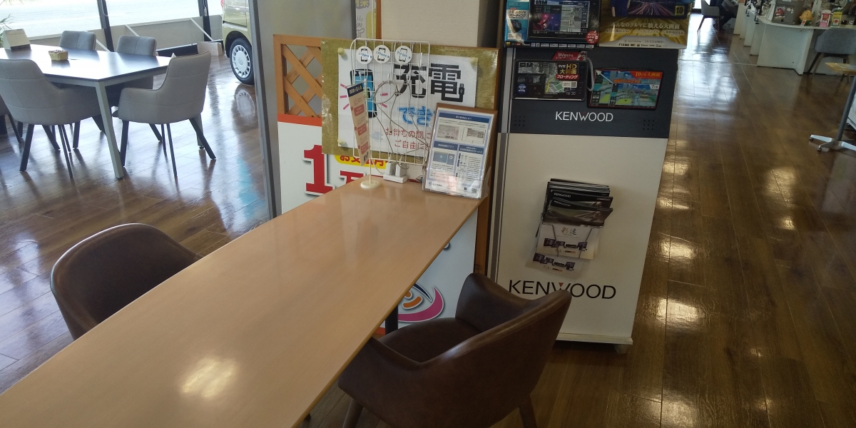 新車展示、パンフレット、雑誌、無料WiFiなどもあります。