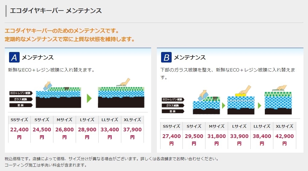 【ガラス、レジン】の2層構造で深いツヤや、酸性雨・紫外線に対する防護能力を持つダイヤモンドキーパーに対して、