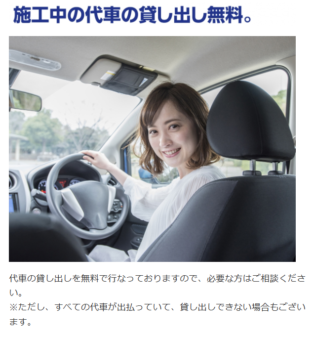 ただし、代車に空きがない場合もありますのでご予約の際にご確認下さい。
