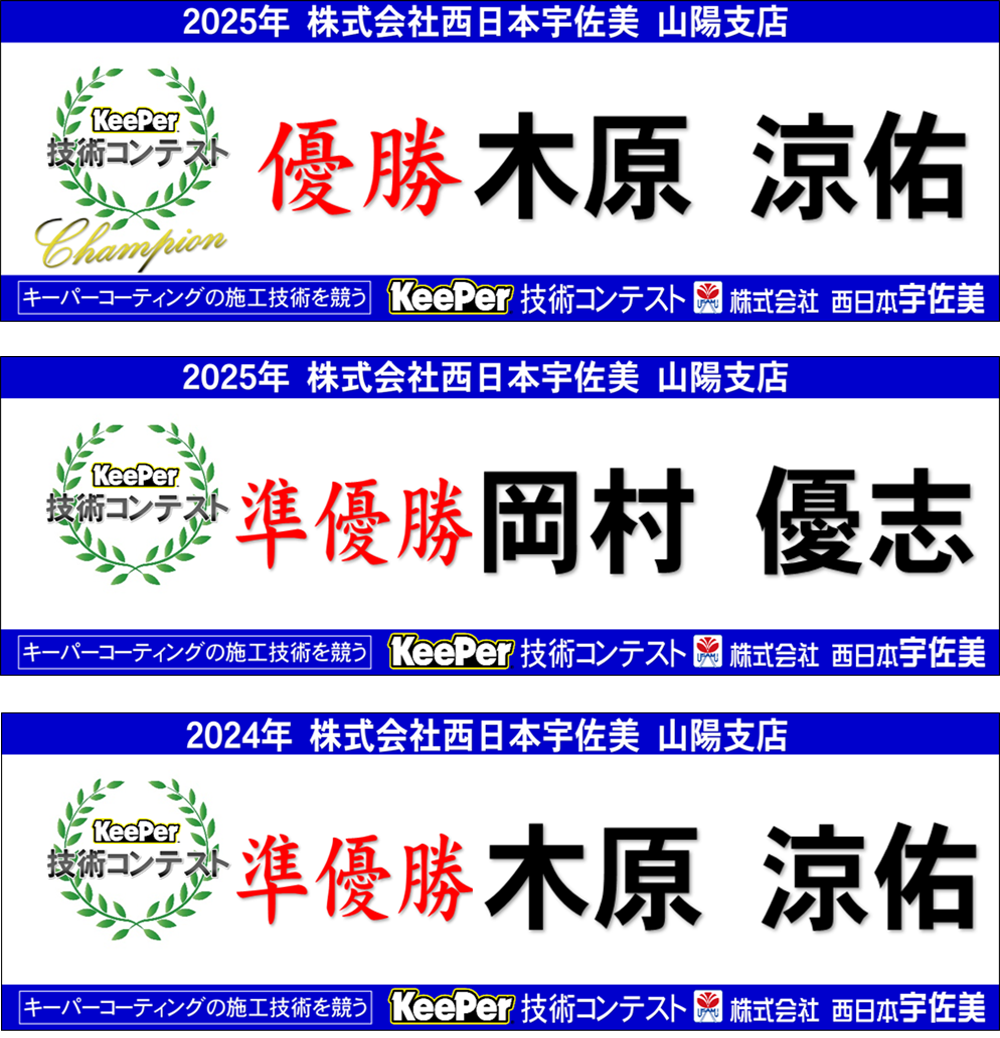 こんにちは、木原です。先日社内のKeePer技術コンテストが開催されました。今回は山陽支店(中四国・兵庫)の店舗で予選会上位3名が全国大会に出場する権利が得られます今回、当店から木原・岡村の2名で参加...